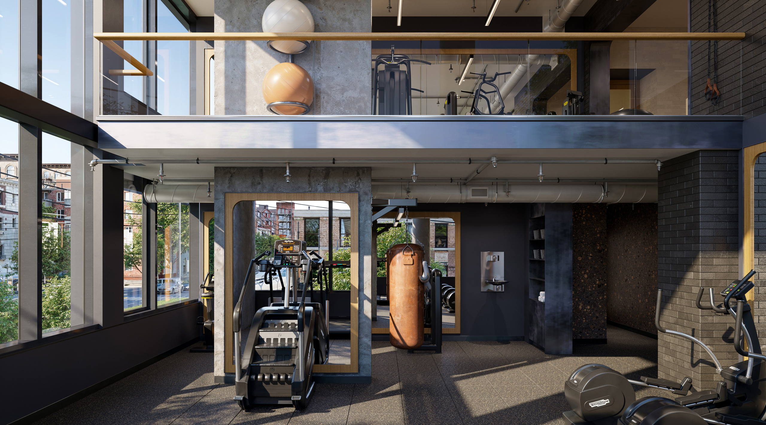 - State-of-the-art double-height Fitness Center featuring:
