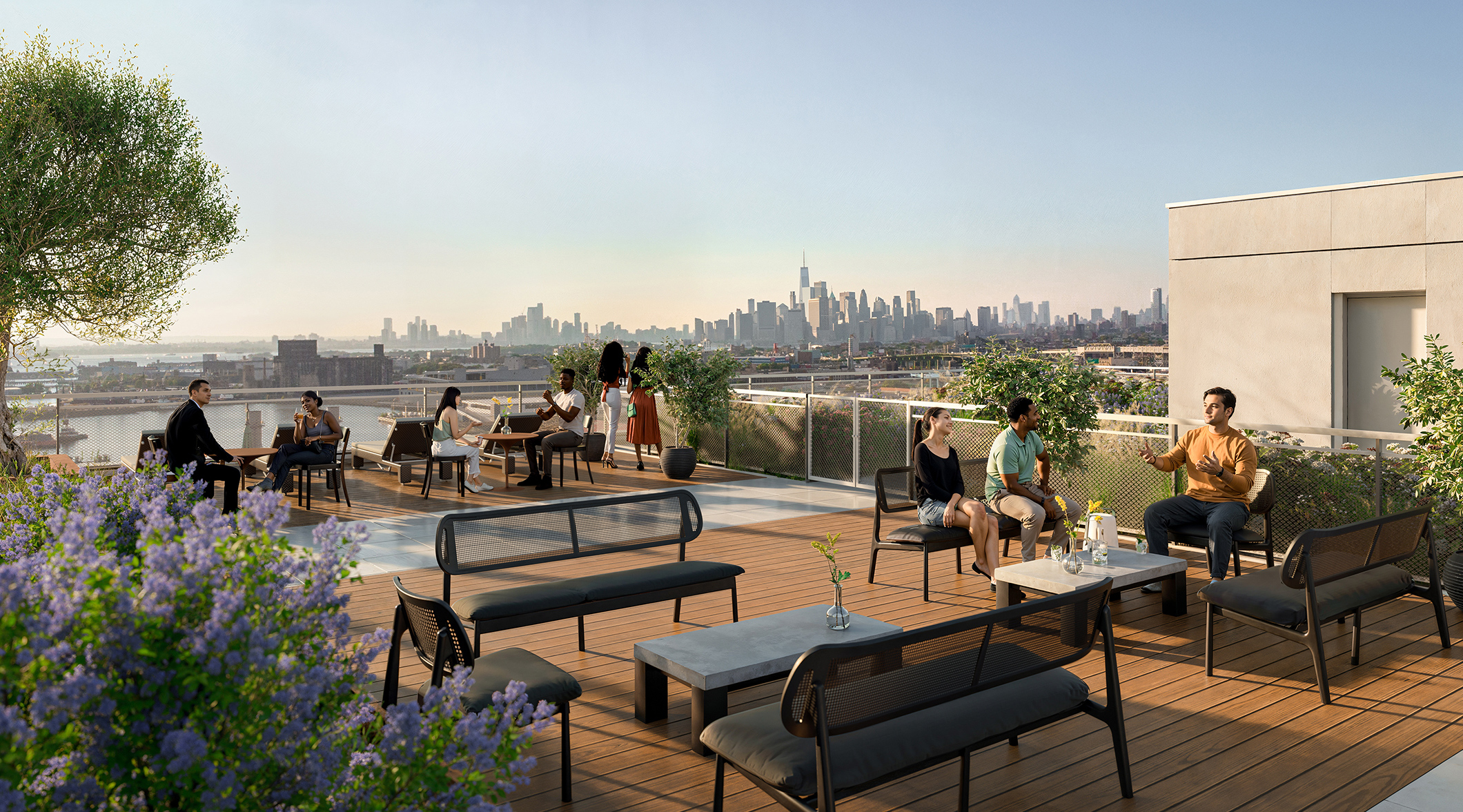 At One Sunset, every moment is designed to elevate your day. From sunrise to sunset, the indoor and outdoor amenity spaces cater to your every need. Whether you’re working, working out, or simply watching the sun dip behind the Statue of Libery, One Sunset offers the perfect backdrop to live fully — every day.